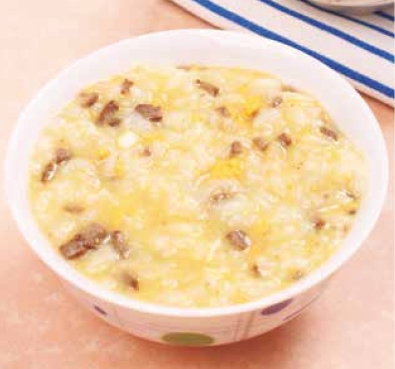 材料 小米100克,猪肝50克,鸡蛋1个。