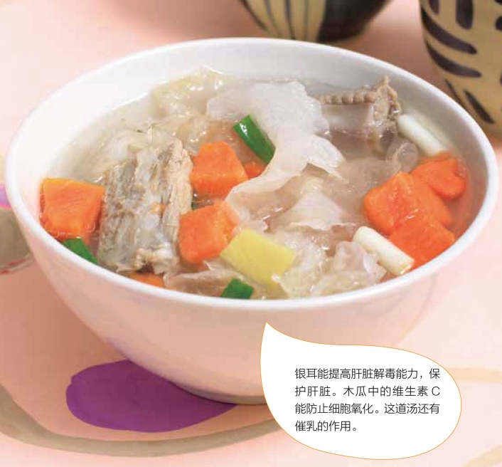 材料 猪排骨150克,干银耳10克,木瓜100克。