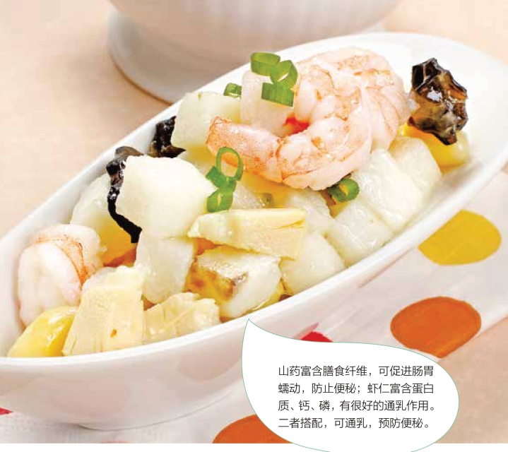 材料 山药200克,虾仁100克,玉兰片、白果、水发木耳各30克。