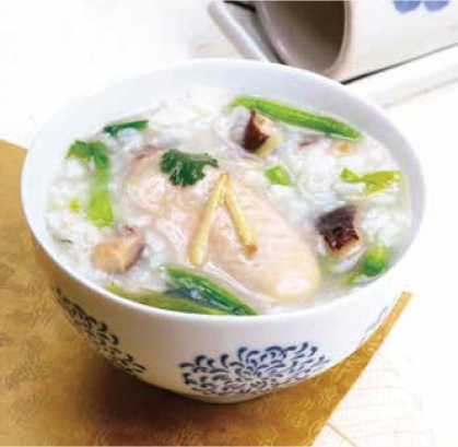 2 锅置火上,放入鸡汤、大米,用大火煮沸,转小火,放入鸡翅、香菇块熬煮30分钟,加菠菜段、盐、葱花、蒜末略煮即可。