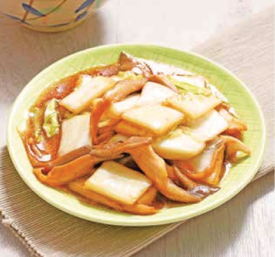 1 白菜洗净,切片;平菇洗净,撕小条,焯烫后捞出沥水。