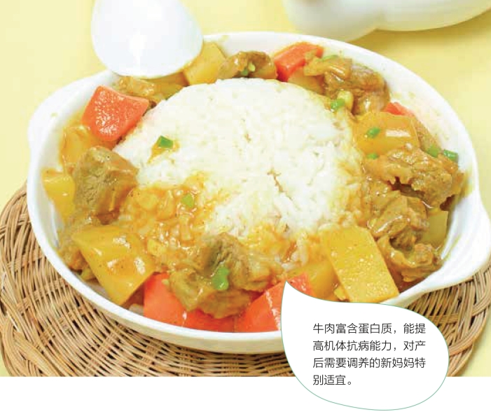 1 牛肉洗净,切小块,煮熟;土豆、胡萝卜去皮切块,大米煮成米饭。