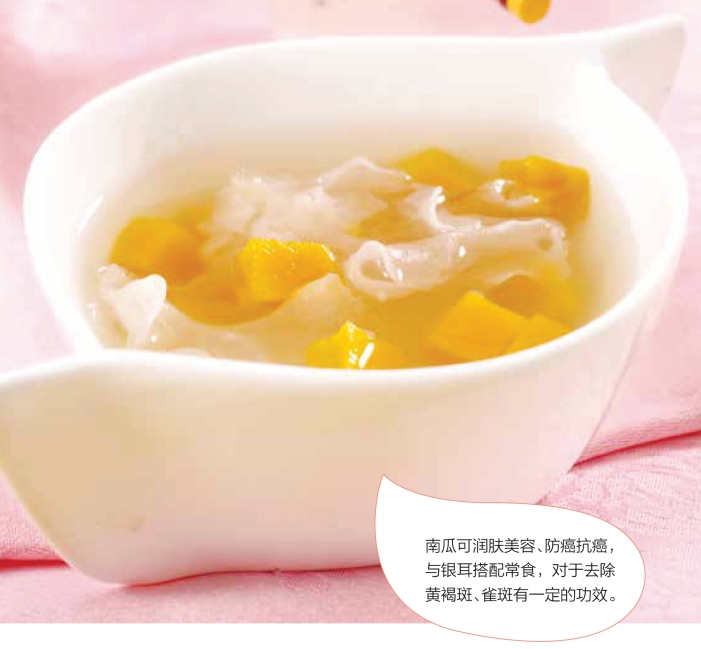 材料 南瓜100克,干银耳、干虾仁各5克。