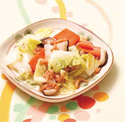 材料 白菜200克,水发香菇、海米(开洋)、胡萝卜各30克。