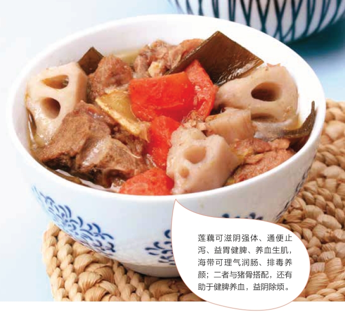 材料 莲藕150克,猪骨100克,水发海带、胡萝卜各50克。