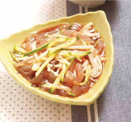 材料 魔芋100克,黄瓜、金针菇各50克。