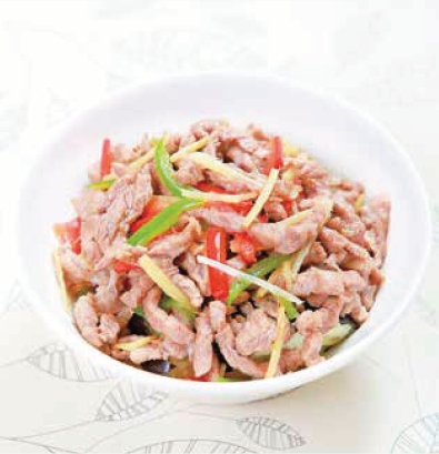 3 锅内倒油烧热,爆香姜丝,将羊肉丝、甜椒丝、葱丝下锅煸炒,烹入料酒,加盐调味,淋少许醋即可。