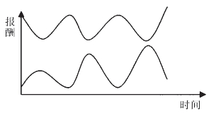 图中显示,如果投资者单独持有这两种股票,风险都很高,如果把它们形成一个投资组合,则没有风险。其原因是它们完全负相关。