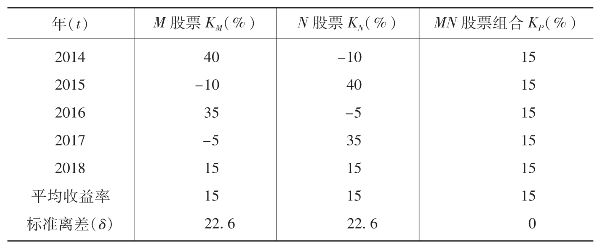假设M股票和N股票构成一证券组合,每种股票在证券组合中各占50%,它们的报酬率和风险情况如表3-2所示。