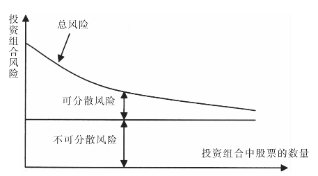 从以上的分析我们知道:(1)当两种完全负相关的股票形成投资组合时,则风险可以完全分散;(2)当两种正相关的股票形成投资组合时,则不能降低任何风险。实际上,各证券之间大部分都是正相关,但不是完全的正相关。就平均而言,其相关系数为+0.6,而大多数股票的相关系数在+0.5~+0.7之间。在这种情况下,把两种股票组合成投资组合能减少风险,但不能消除风险。不过,如果股票数量较多,则能分散掉大部分风险,而当股票数量足够多时,几乎能把所有的非系统风险分散掉。