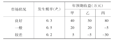 表3-4 甲、乙、丙三公司年预期收益及其概率
