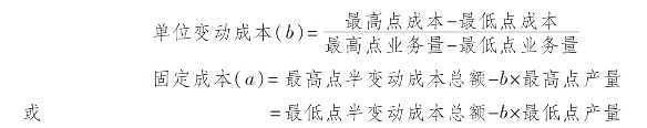 高低点法是指以某一时期内的最高点产量的半变动成本与最低点产量的半变动成本之差,除以最高产量与最低产量之差,先计算出单位变动成本的值,然后再据以把半变动成本中的变动部分和固定部分分解出来的一种方法。此方法是历史成本法中最简单的一种。其计算公式为:
