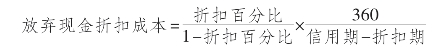 2.应付账款的成本。企业如果在折扣期内付款,就可以享受到对方提供的折扣,但如果企业没有在折扣期内付款而失去这种免费信用,则要承受失去现金折扣的代价。