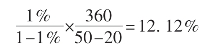 计算结果表明,如果企业放弃现金折扣,以取得这笔为期30天的资本使用权,是以承担12.12%的年利率为代价的。也就是说,放弃1%的现金折扣意味着该企业可以向供应商融通9.9万元资本使用30天。
