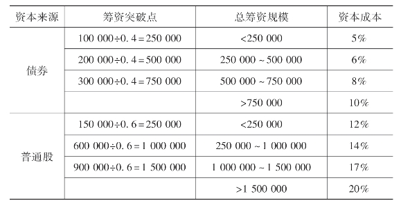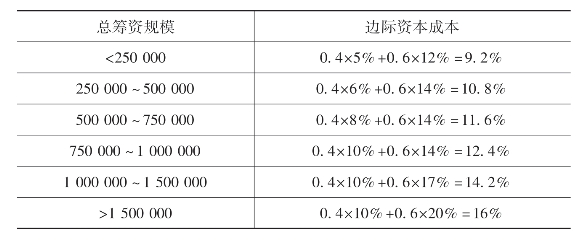 因此,企业追加筹资的边际资本成本如表6-4所示。