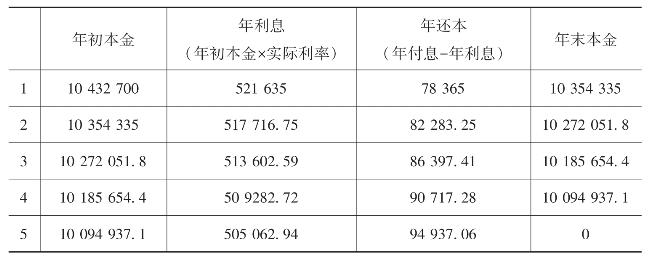 〔例6-1〕2018年12月31日,甲公司经批准发行5年期一次还本、分期付息的公司债券10 000 000元,债券利息在每年12月31日支付,票面利率为6%。债券发行价格为10 432 700元。筹集费率为2%,企业所得税率为40%。