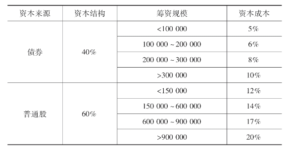 〔例6-4〕企业现有资本结构为理想资本结构,如表6-2所示。企业希望在追加筹资后保持不变,如表6-3所示。现有债务资金40%,普通股票筹资占60%。