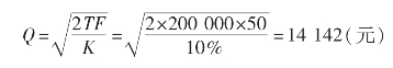 〔例7-2〕某企业预计全年所需的现金需求总量为200 000元,平均每次证券固定变现费用为50元,有价证券的年利息率为10%,要求采用存货模式确定该企业的最佳现金持有量。