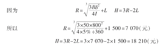 〔例7-3〕设某公司持有有价证券的平均年利率为5%,每次有价证券转换成本为50元,公司的现金最低持有量为1 500元,又根据以往经验测算出现金变化的标准差为800元。计算最优现金返回线和现金控制上限。