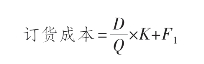 (1)订货成本。订货成本是指取得订单所耗费的成本,如差旅费、办公费用、电话费等,订货成本中有一部分是与订货次数无关的成本,如常设采购机构的基本开支等也称为订货的固定成本,用F1表示;另一部分与订货次数有关,如差旅费、电话费等,称为订货的变动成本。如果每次订货的变动成本用K表示;订货次数等于存货年需要量D与每次进货量Q之比。因此,订货成本的计算公式为:
