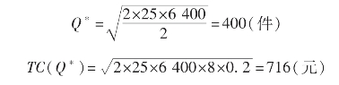 如果使用的零件是外购的,单位成本为8元,储存变动成本为零件价格的20%。那么外购零件的最佳经济批量和总成本为: