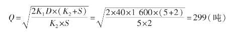 〔例7-7〕某企业需要A材料年需求量为1 600吨,每次订货成本为40元,单位材料年储存成本为5元,单位缺货年平均成本2元,则: