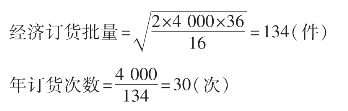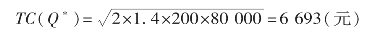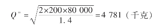 〔例7-5〕某企业全年生产需求A材料,年度采购总量为80 000千克,材料单价为500元,一次订货成本为200元,每千克材料的年平均储存成本为1.4元。根据以上材料,存货决策如下: