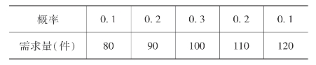 〔例7-10〕某公司每年需外购4 000个甲产品,该产品的单位储存变动成本为16元,一次订货成本为36元,单位缺货成本为120元。在进货间隔期的需要量及其概率如表7-5所示。