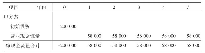 〔例8-1〕大明公司因业务发展的需要,准备购入一套设备。现有甲、乙两个方案可供选择。甲方案需投资200 000元,使用寿命为5年,采用直线法折旧,5年后设备无残值,5年中每年销售收入为120 000元,每年的付现成本为50 000元;乙方案需投资230 000元,使用寿命也为5年,5年后有残值收入30 000元,也采用直线法折旧,5年中每年的销售收入为148 000元,付现成本第一年为70 000元,以后随着设备陈旧,逐年将增加修理费5 000元,另需垫支流动资金30 000元。假设公司所得税率为40%。试计算两个方案的现金流量。