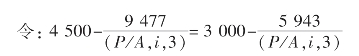 事实上,由于A项目原始投资额大(9 477元),因此每年现金流量中,投资回收的份额也较大(3 678元)。但内含报酬率法假定每年现金流量是以原始投资额按20%取得的(4 500元),而投资回收额是按资本成本率8%要求确定每年回收额的(3 678元),因而每年现金流量扣除投资回收后的投资报酬也较高(822元)。只有当两方案每年现金流量中投资报酬的数额相等时,内含报酬率法与净现值法才会得出同样的结论。我们假定资本成本率为i时年金现值系数为(P/A,i,3),则: