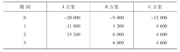 表8-4 A、B、C三个投资方案的现金流量 单位:元