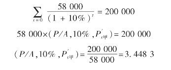 〔例8-8〕某企业拟建一项固定资产,需投资100万元,按平均年限法计提折旧,使用寿命10年,期满后无残值。该项工程于当年投产,预计投产后每年可获净利10万元。可计算该方案的内含报酬率如下: