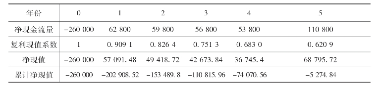 表8-8 不同贴现率下的净现值 单位:元