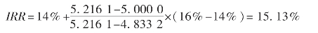 可见,14%<IRR<16%,应使用内插法