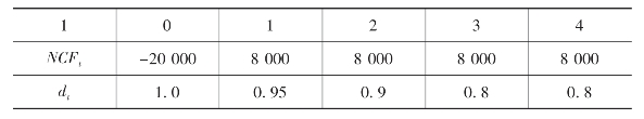NPV=0.95×8 000×(P/F,10%,1)+0.9×8 000×(P/F,10%,2)+0.80×8 000×(P/F,10%,3)+0.8×8 000×(P/F,10%,4)+1.0×(-20 000)