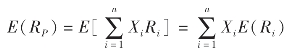 假设组合中各证券的报酬率为Ri,投向证券的资本比重为Xi,则:
