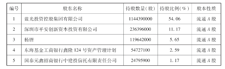 表10-7 截至2015年前五大股东持股情况