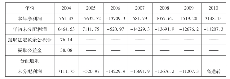 表10-8 迪康公司2004-2010年股利分配情况 单位:万元