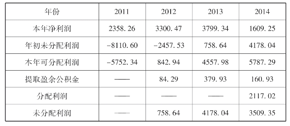 表10-9 迪康公司2011~2014年股利分配情况 单位:万元