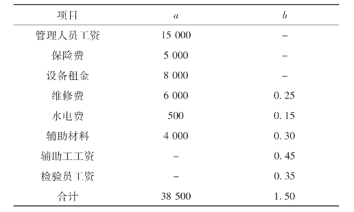在成本性态分析的基础上,可将任何成本项目近似地表示为Yi=ai+bixi(当ai为零时,yi=bixi为变动成本;当bi为零时,y=ai为固定成本;当ai和bi均不为零时,Yi为混合成本;xi可以为多种业务量指标,如产销量、直接人工工时等)。