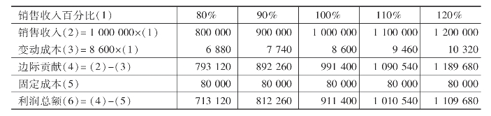 〔例11-5〕ABC公司预算年度的销售业务量达到100%时的销售收入为1 000 000元,变动成本为8 600元,固定成本为80 000元。