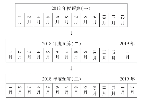 如在2018年1月至12月的预算执行过程中,需要在1月末根据当月预算的执行情况,修订2月至12月的预算,同时补充下一年2019年1月份的预算;到2月末可根据当月预算的执行情况,修订3月至2019年1月的预算,同时补充2019年2月份的预算,以此类推。逐月滚动预算方式示意图如图11-1所示。