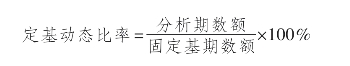 1.定基动态比率。定基动态比率是指以某一时期的数额比固定的基期数额而计算出来的动态比率。其计算公式为: