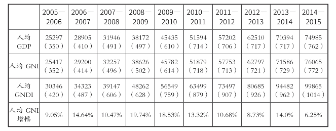 从上表看,尼泊尔自2005—2006年度以来,人均国民收入基本保持两位数的增长率,有的年份甚至高达近20%。与此同时,尼泊尔人均国民可支配总收入也快速增长,2014—2015年度,尼泊尔人均国民可支配收入已达99865卢比(约合1014美元),是2000—2001年度(约合256美元)的4倍。