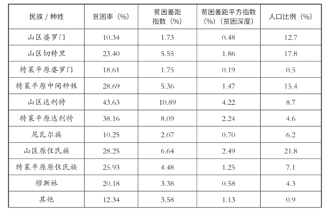 表5-7 尼泊尔不同民族和种姓的贫困率