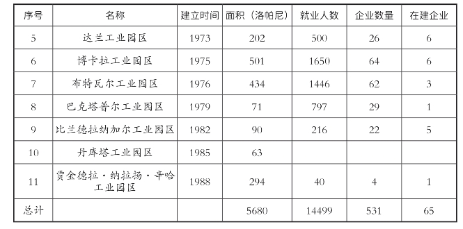 5.达兰工业园区:它也是印度政府1973年援建的一个工业园区,总面积202洛帕尼,约10.3公顷,在营企业26家,就业人数500人。