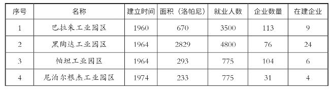 1.巴拉朱工业园区:该工业园区建立于1960年,是尼泊尔工业发展公司根据尼泊尔政府与美国国际开发署签订的协议而兴建的。该工业园区面积670洛帕尼(Ropani)[6],约合34公顷,目前在运营的工业企业113家,就业人数3500人。