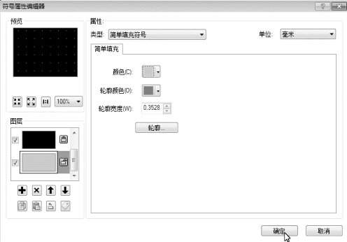 沙地符号属于面状符号。沙地符号可以看作点状符号和面状符号的组合。制作沙地符号首先得知道沙地符号的属性,如沙地符号的填充点大小为0.3或0.2,边线宽度为2.0或1.5。下面给出具体制作沙地符号的操作过程。