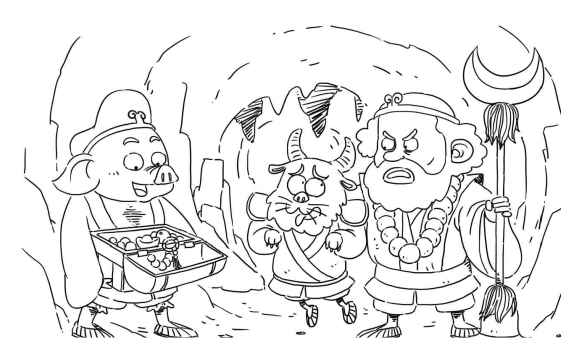 猪八戒和沙僧两人将洞中的宝贝全部搜出来。珊瑚、玛瑙、琥珀、珍珠、美玉、赤金,真是眼花缭乱,美不胜收。此时,孙悟空还在擒妖捉怪,八戒和沙僧闲着没事。