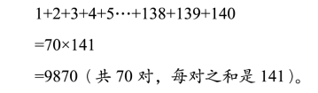 傻小子心想,既然表姐说和数等于1万,那么我也可以来试探一下,看看1万是不是1+2+3……+150的和。先来“毛估估”。由于后面的数目越加越大,所以不要先拿150作为上限,来个140吧!